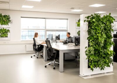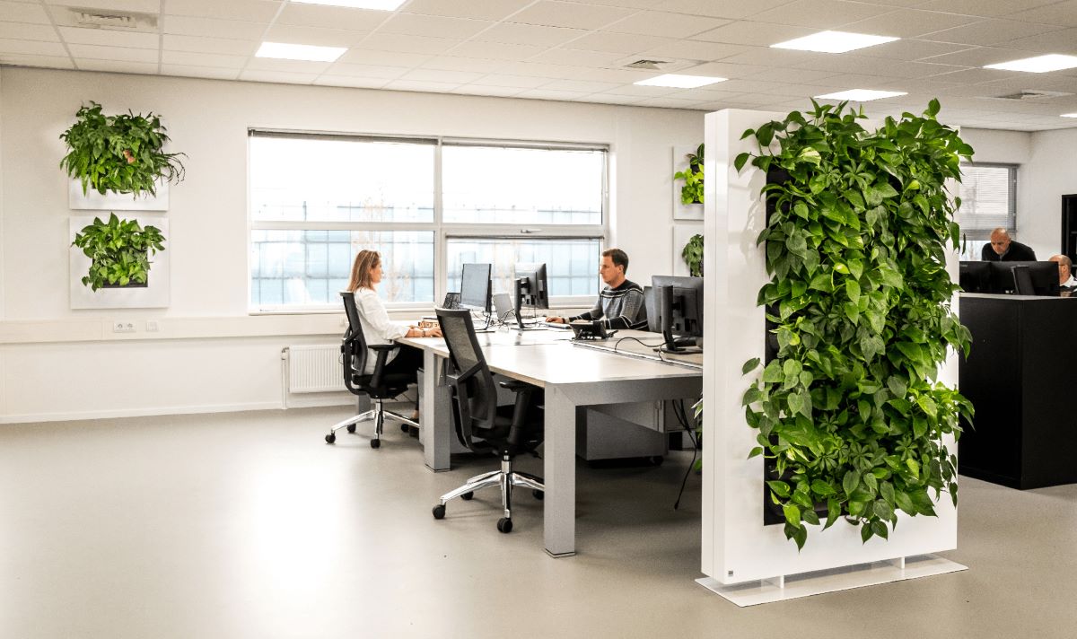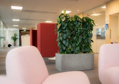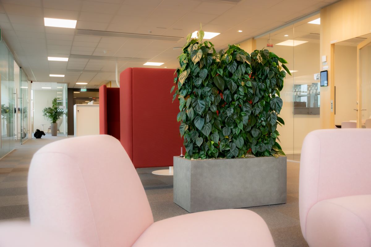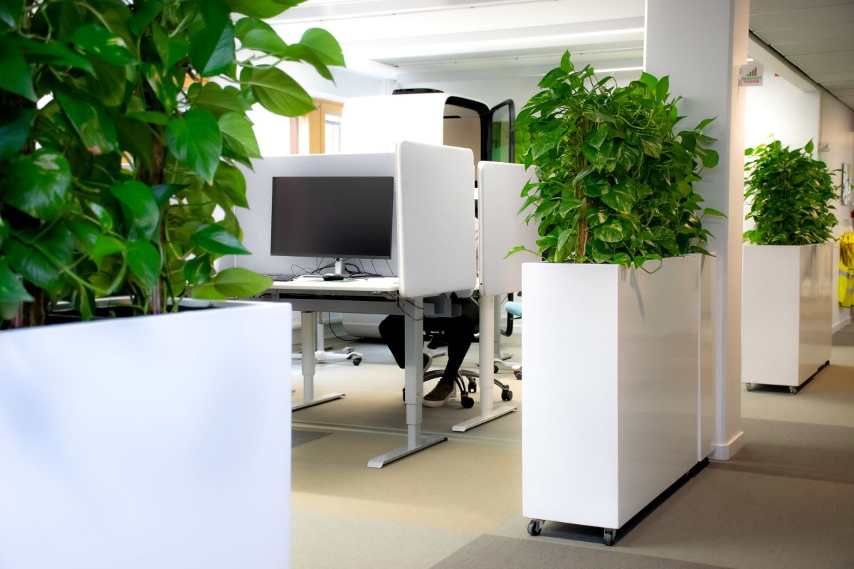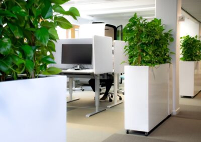 En växtskärm fyller många funktioner. Ofta handlar det om att begränsa ljud och insyn. Tänk att byta ut alla de tråkiga tygklädda mellanväggarna i det öppna kontorslandskapet mot växtskärmar. Vilken enorm skillnad det skulle göra.
