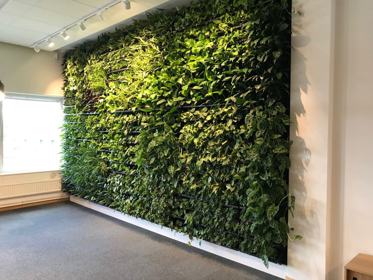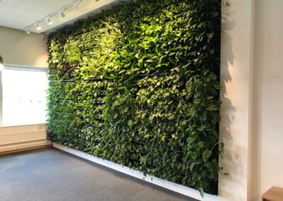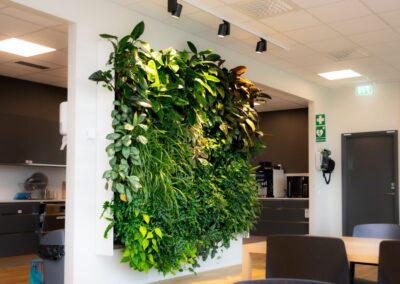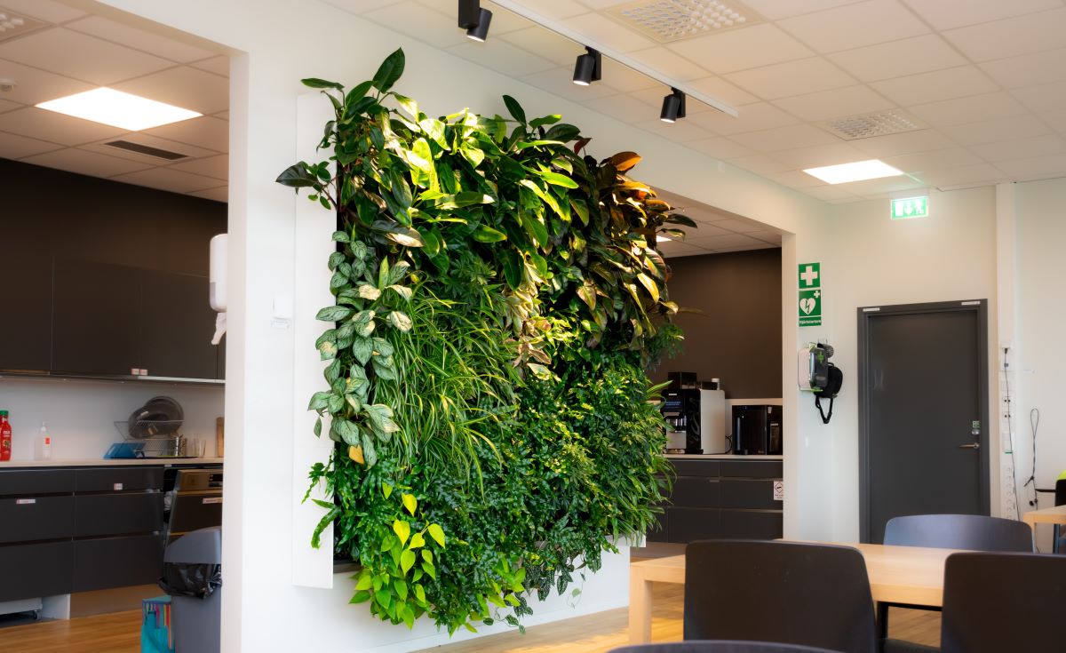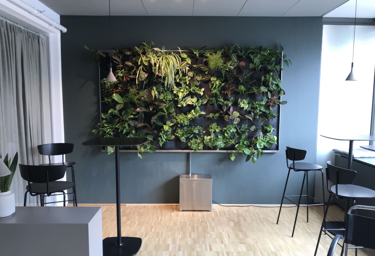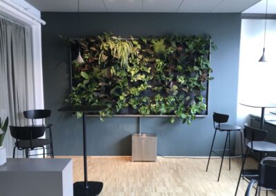 Växtväggar på kontor eller i offentliga miljöer skapar en vackert grön och frodig omgivning. Genom montering på en vertikal yta maximeras nyttan av ett oanvänt utrymme. Samtidigt hjälper växtväggen till att filtrera luften och förbättra inneklimatet.